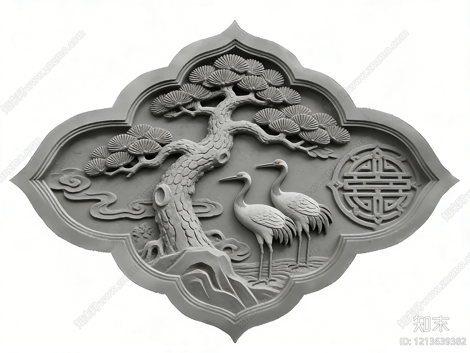 新中式浮雕 2D砖雕 松鹤延年 石材雕花 景墙照壁 砖雕图案贴图