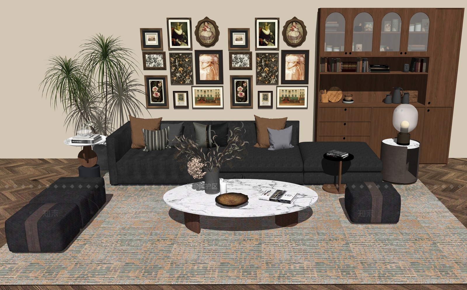 中古风家居客厅 中古风沙发组合k 中古风家具 中古风油画