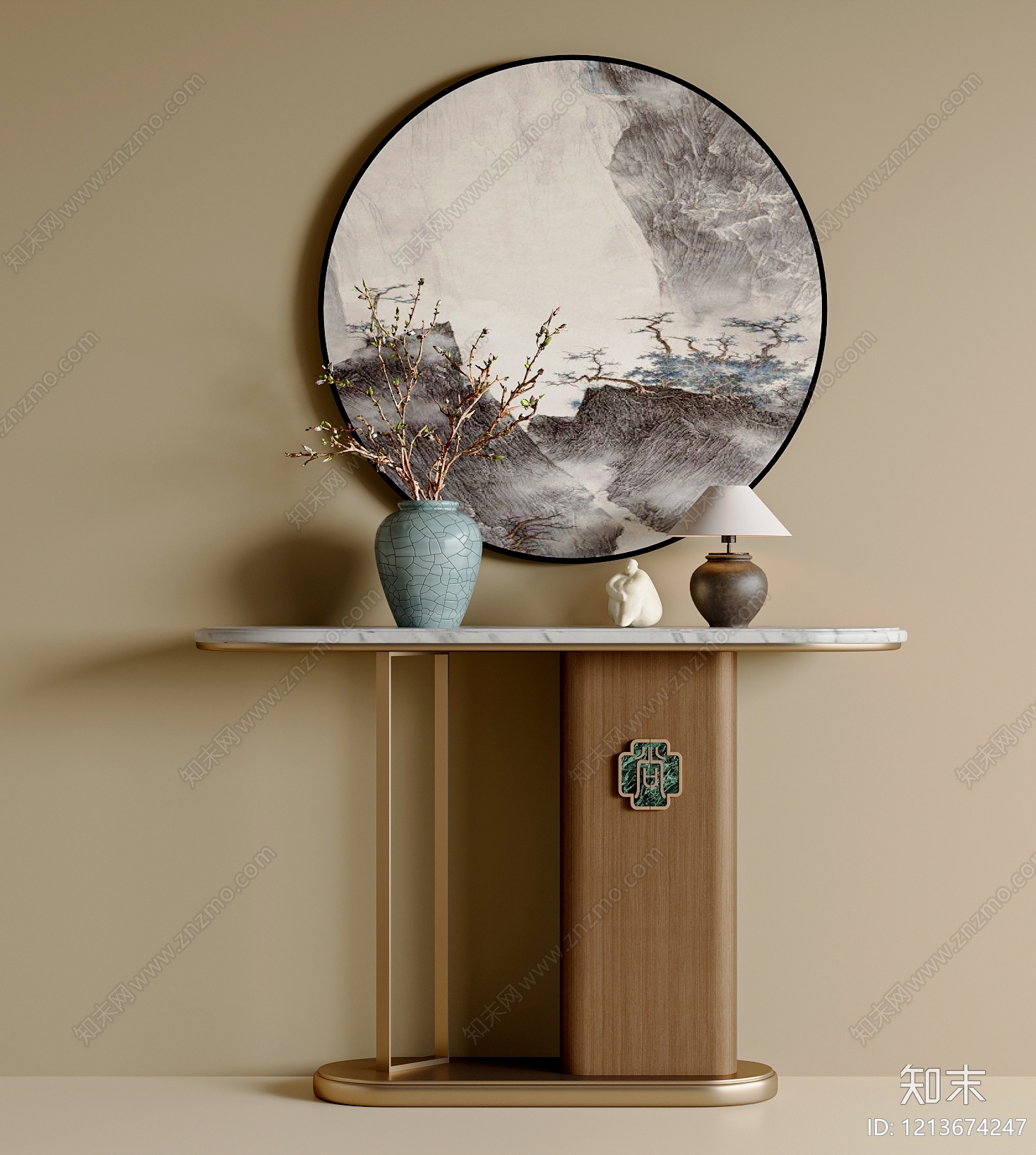 新中式玄关柜 新中式挂饰 玄关柜摆件 花瓶