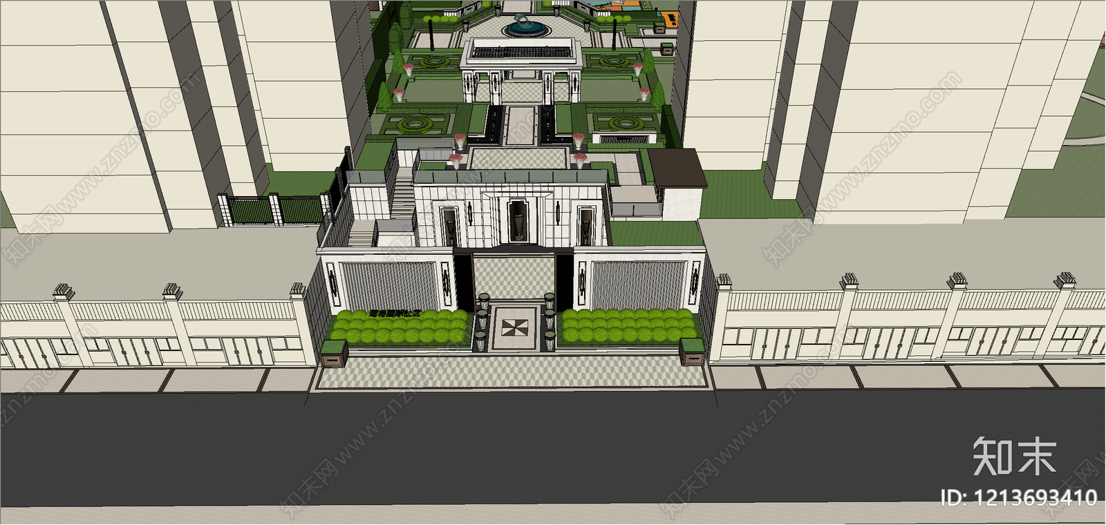 - 现代轻奢小区景观 小区主入口 入口大门 建筑门头 景观轴线