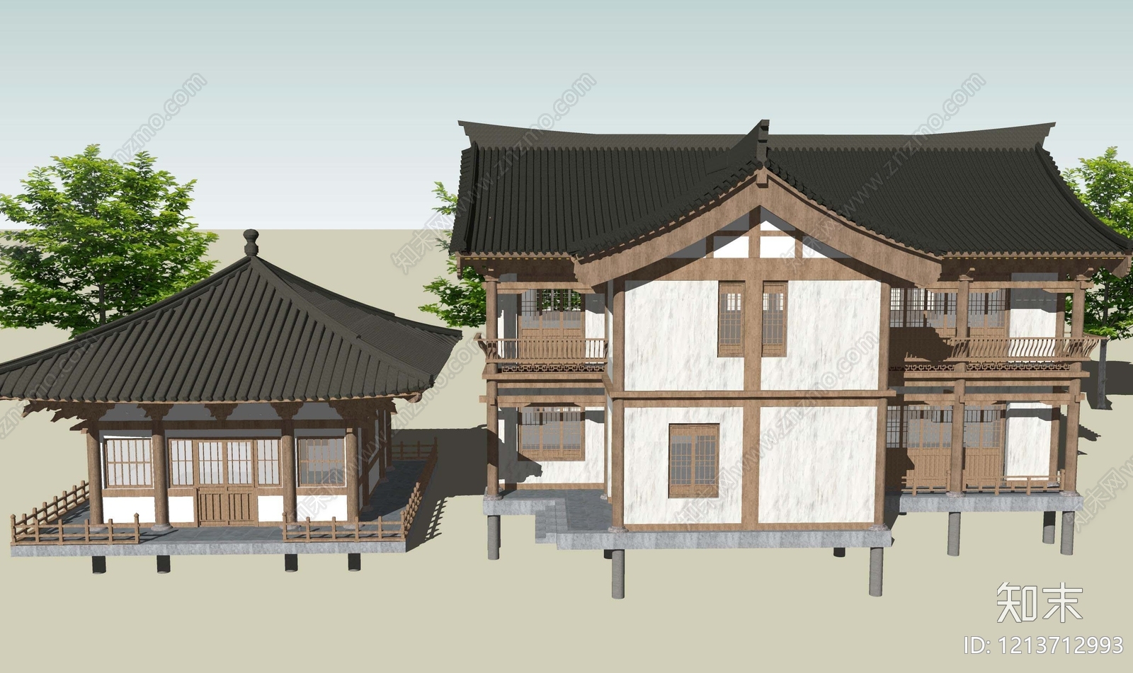 - 新中式古建筑 新中式 公园公建 小区配套
