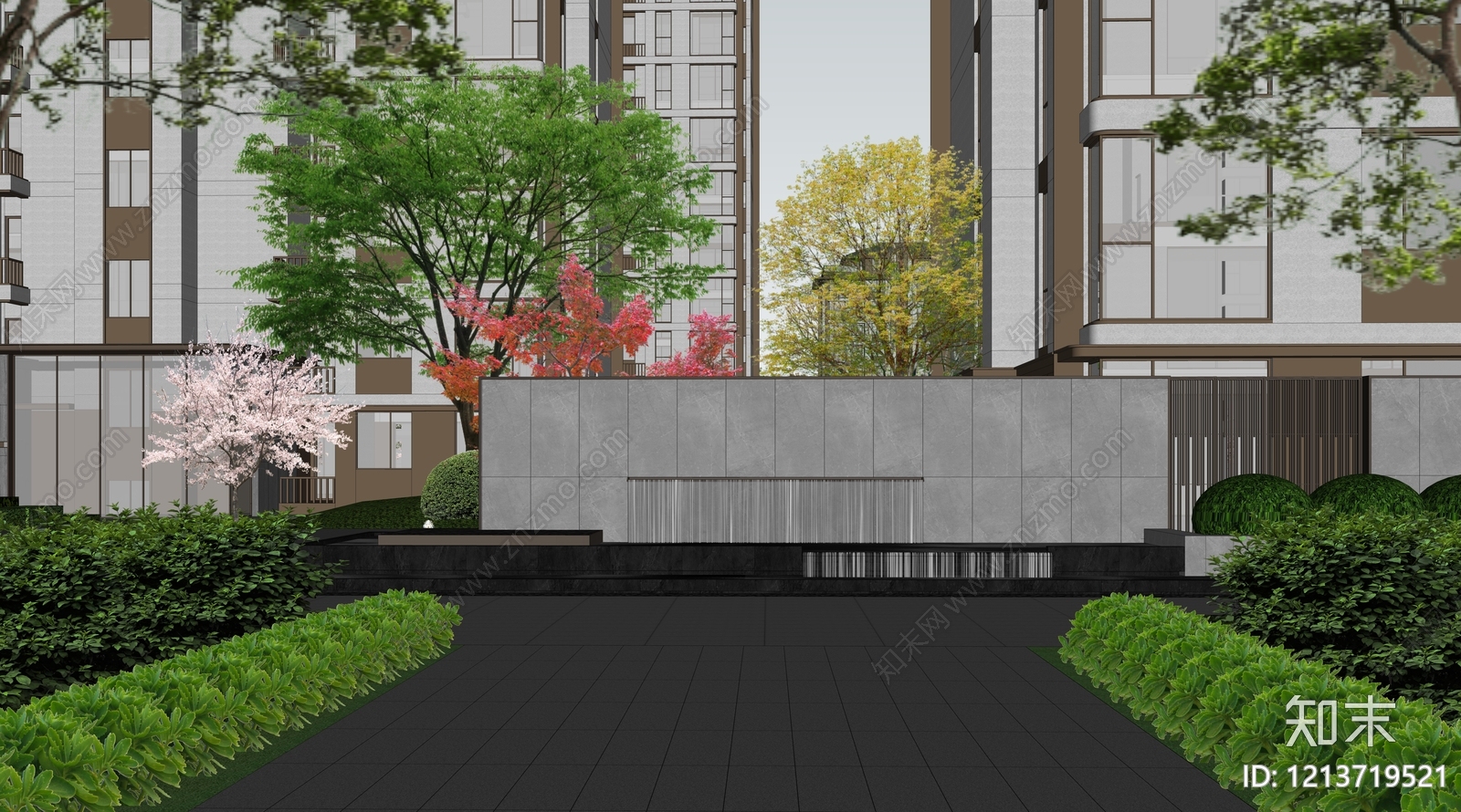 现代简约景墙 现代流水景墙 小区入口景观景墙 入口对景流水景墙