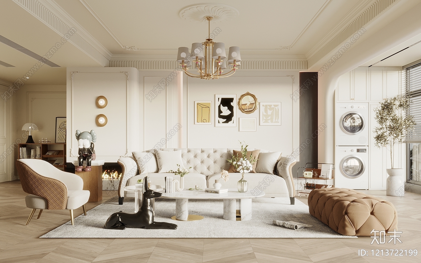 法式家居客厅 风客厅 沙发茶几组合 沙发背景墙 吊灯 石膏线套