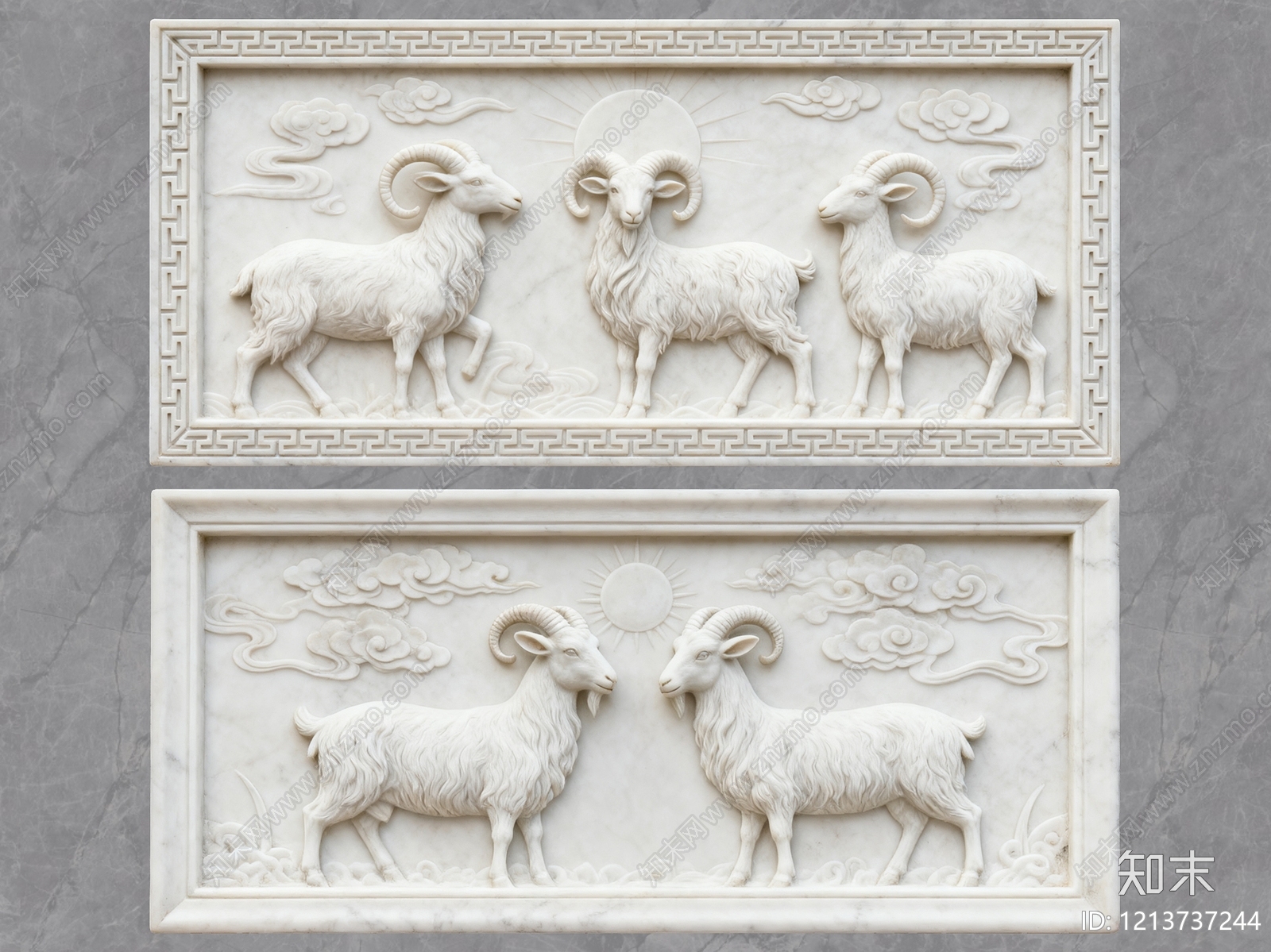 新中式浮雕 2D浮雕图案 三阳开泰 石材雕花 景墙照壁 石雕壁画