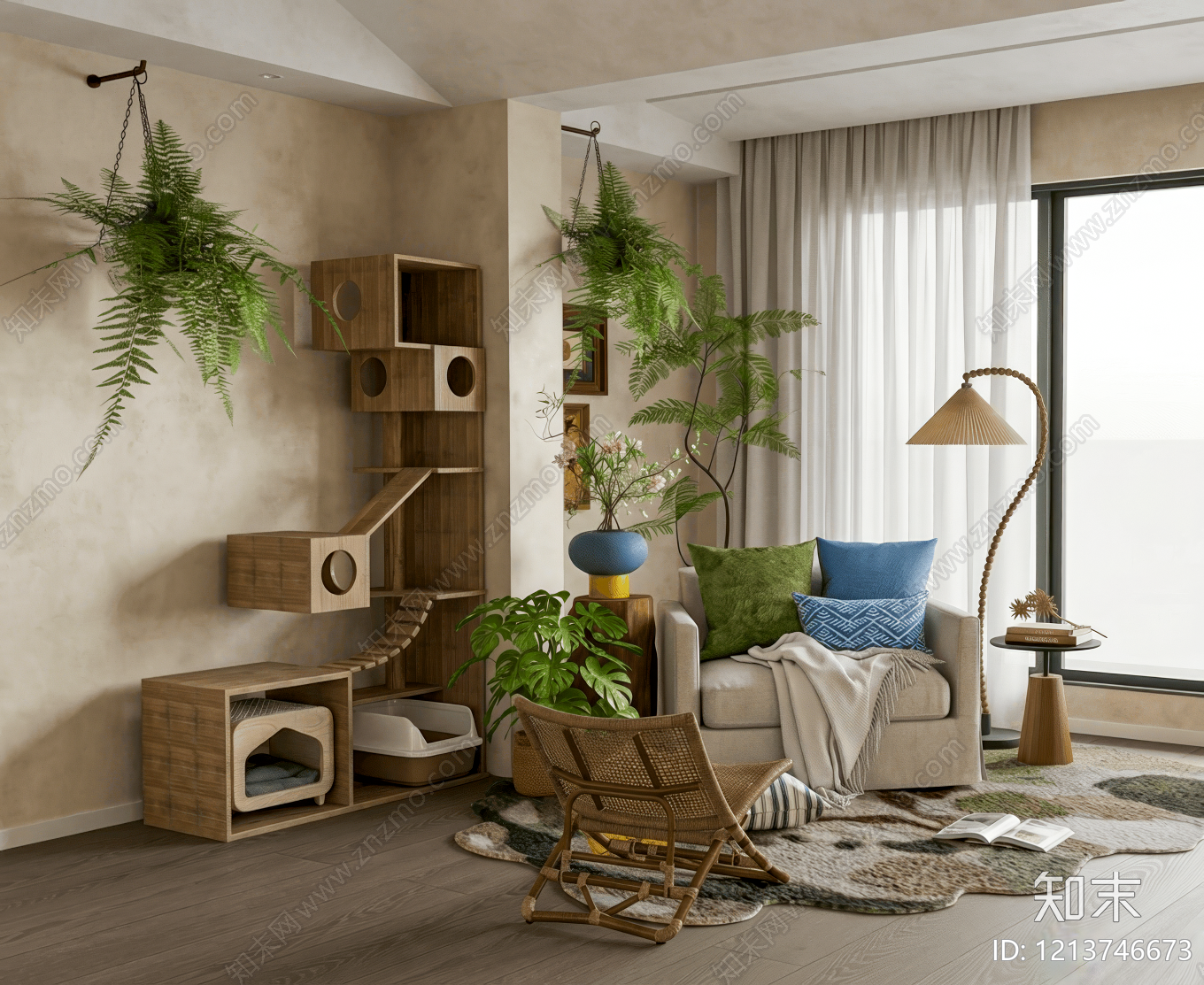 奶油风家居客厅 原木中古家居客厅 软装搭配 猫爬架