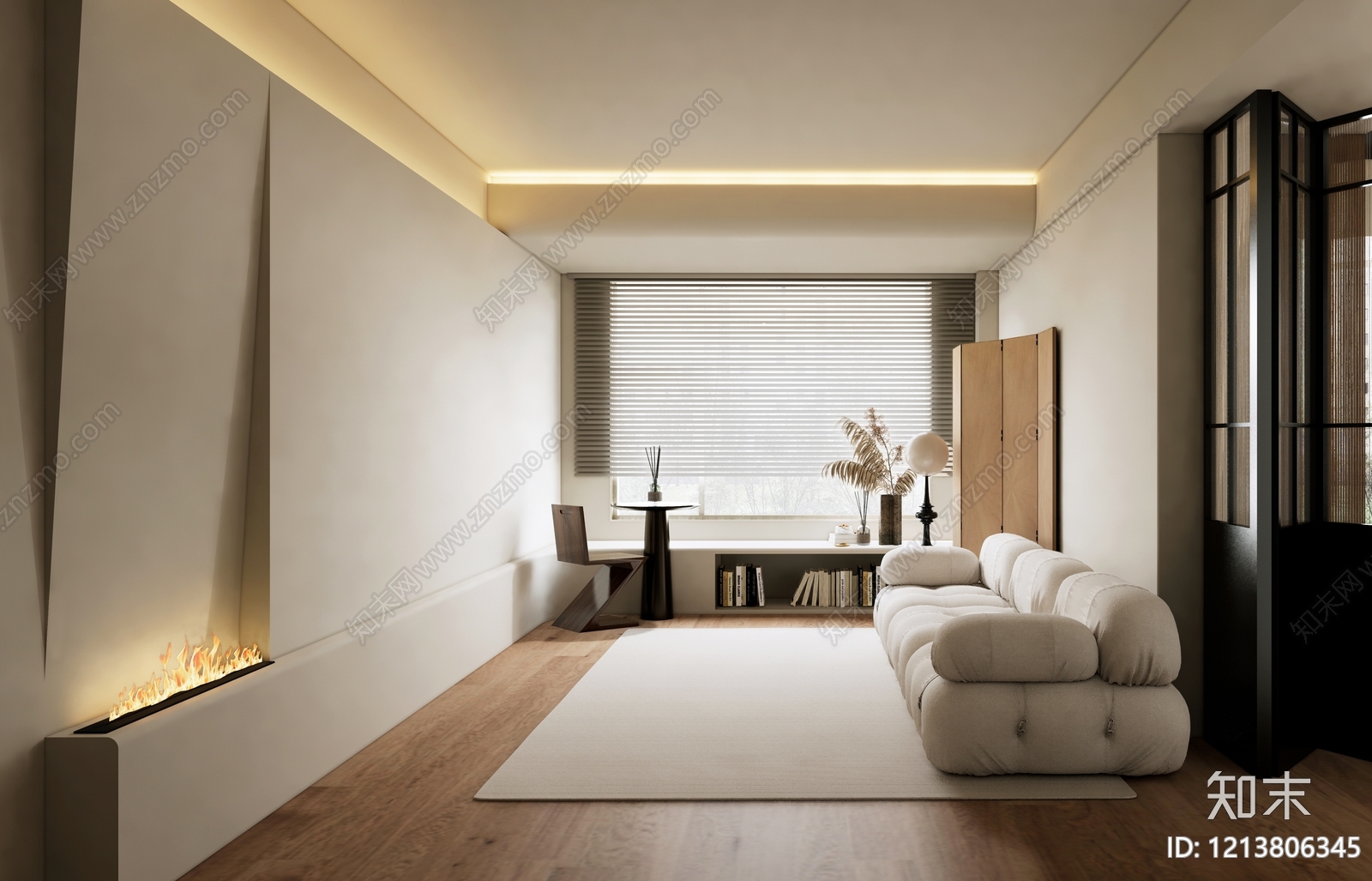 奶油风家居客厅 现代简约 壁炉 沙发 屏风
