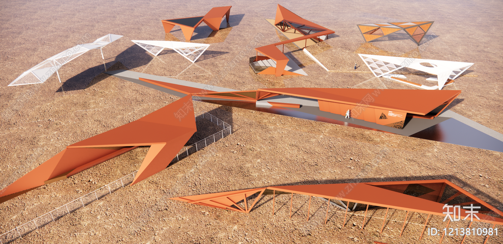 解构主义建筑廊架 现代廊架 折线廊架 折纸长廊 景观建筑 创意廊架
