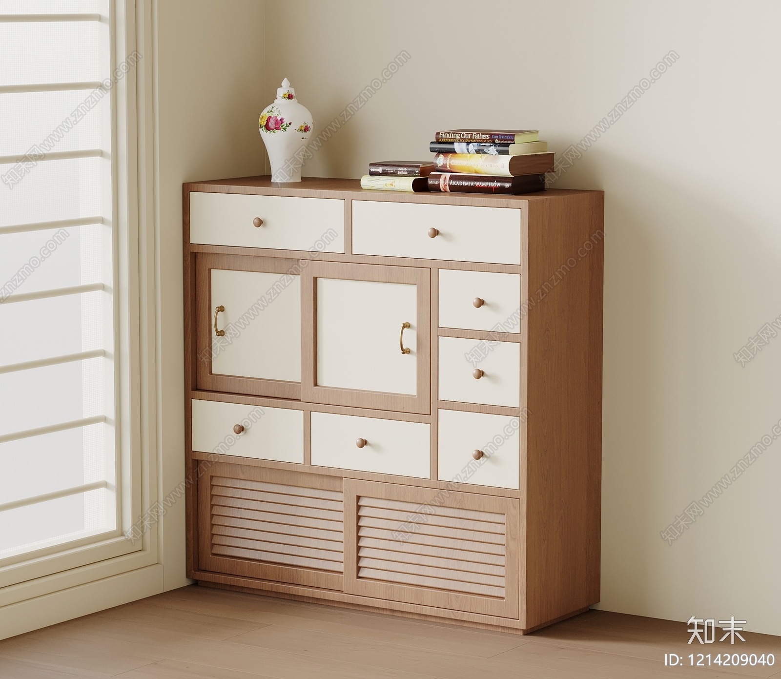 原木奶油风餐边柜