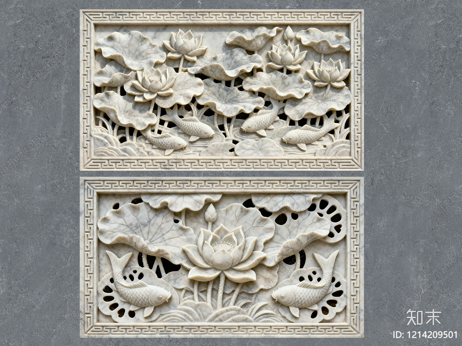 新中式浮雕 2D浮雕图案 荷花荷叶 汉白玉浮雕 石材雕花 景墙照壁