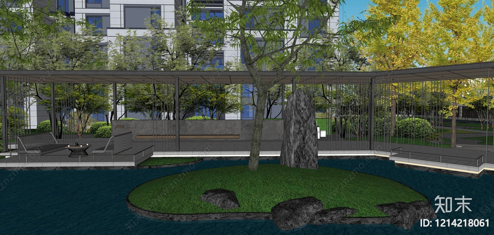 - 新中式小区景观 中庭景观 中庭景观廊架 会客厅