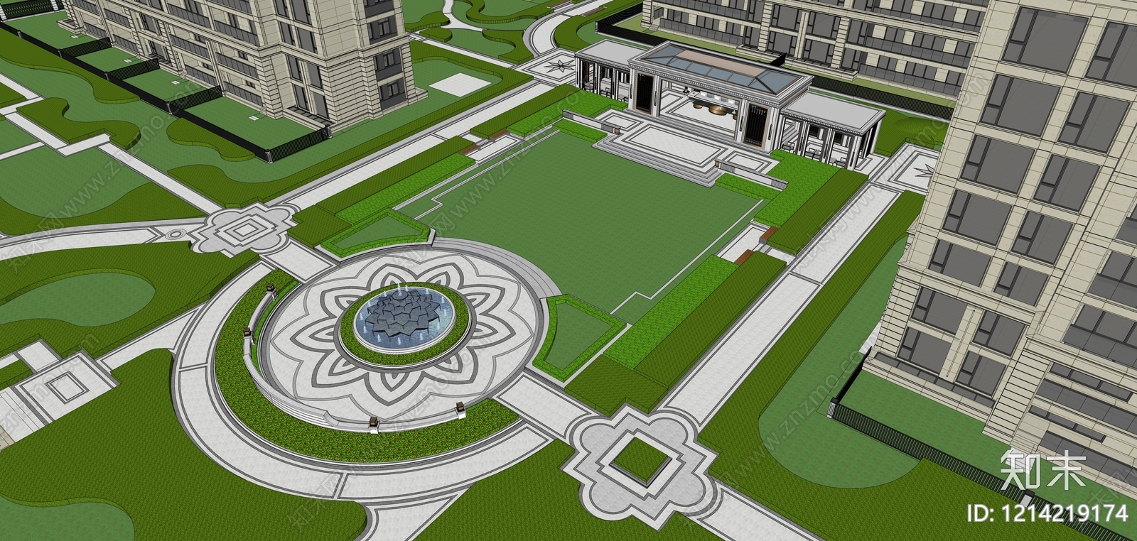 - 现代简约小区景观 现代住宅大区景观 现代小区中轴水景 现代小区景观