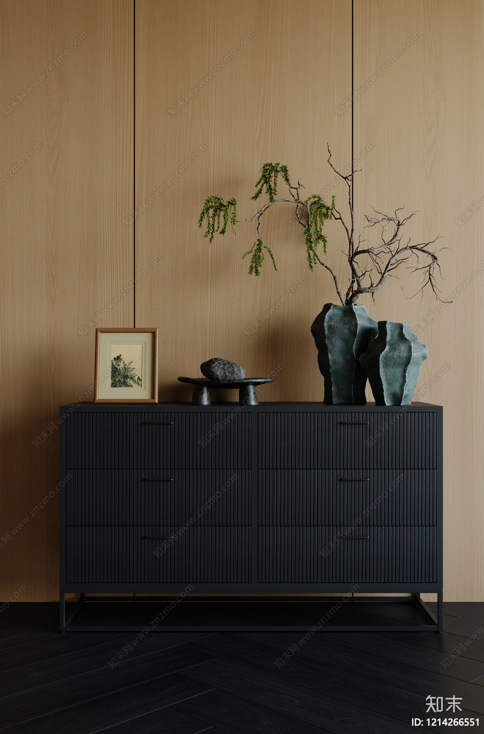 新中式玄关柜 中古风玄关柜 玄关柜 边柜 花瓶花艺摆件 木地板