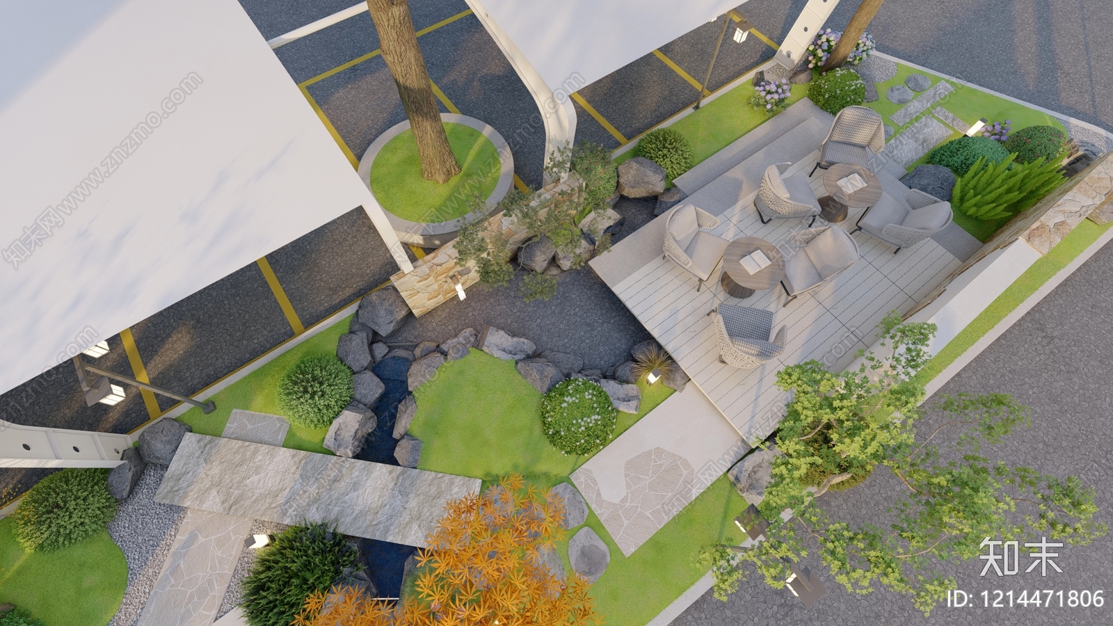 - 新中式景观别墅庭院 中式庭院花园 园林景观 枯山水
