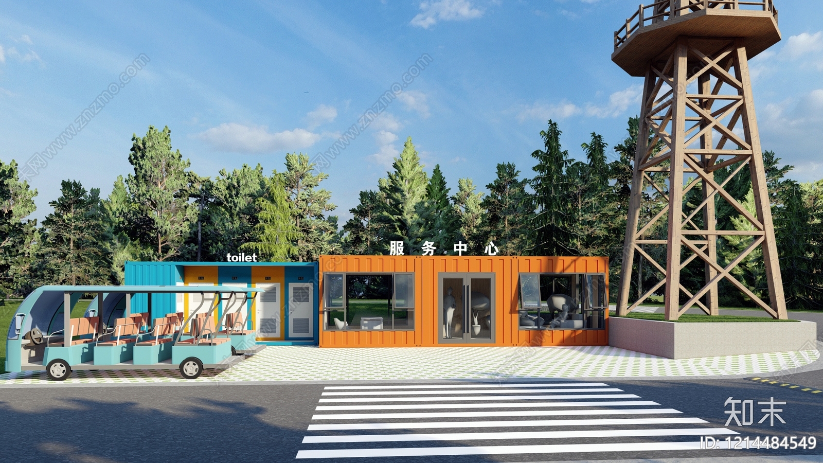 现代集装箱建筑风格小公建 旅游景区入口 游客服务中心 旅游服务站点 风车艺术构筑装置 集装箱装置