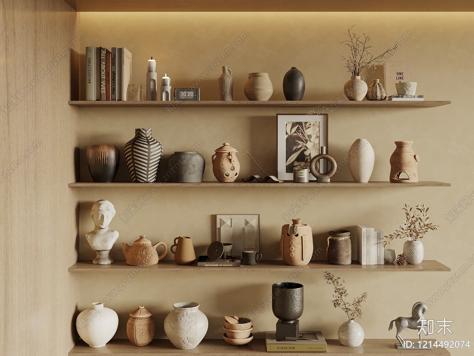 - 现代摆件组合 装饰摆件 花瓶 陶罐 书籍 雕塑
