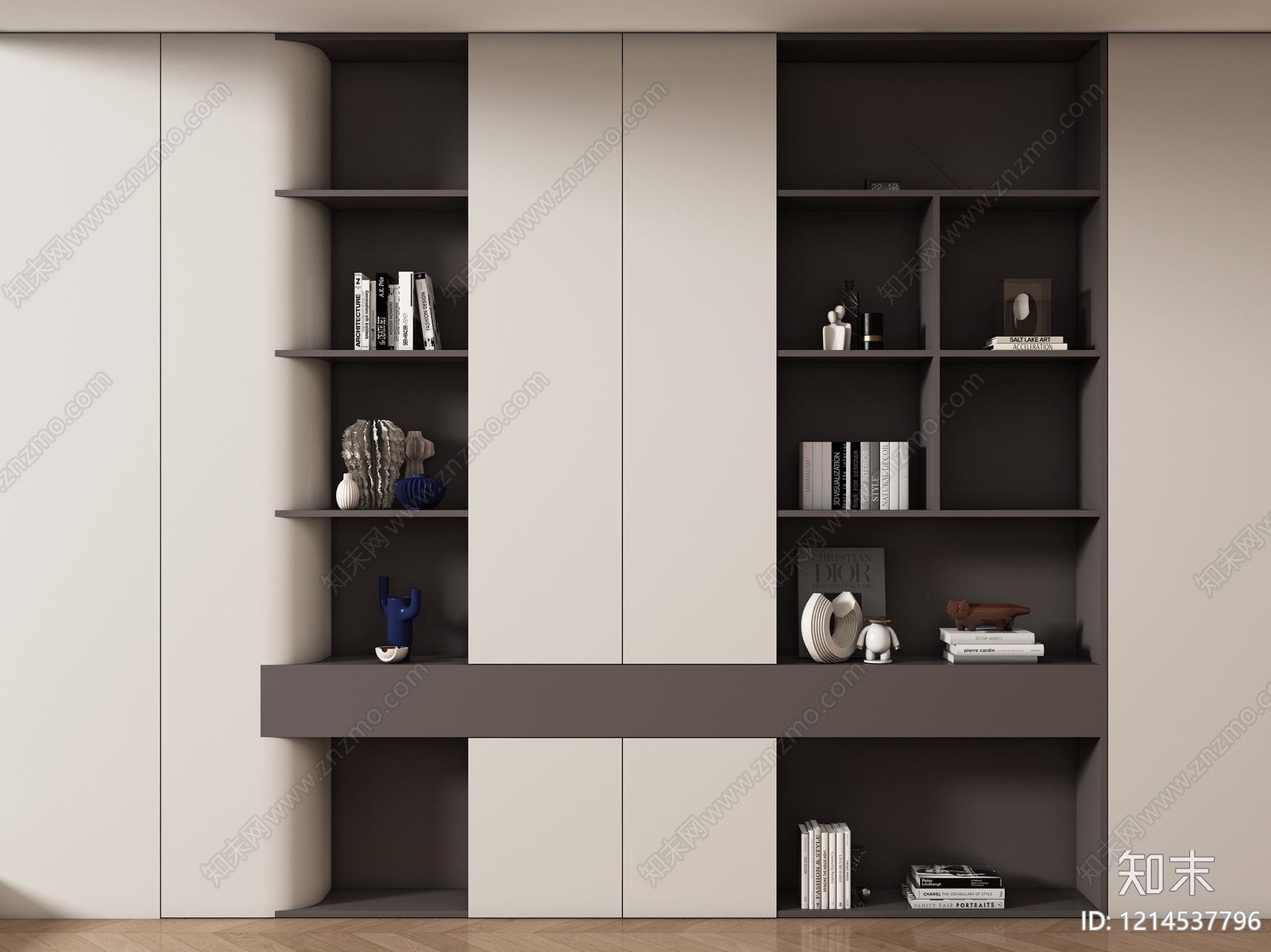 现代极简书柜 现代书柜 储物柜 背景柜 书籍摆件组合 装饰柜