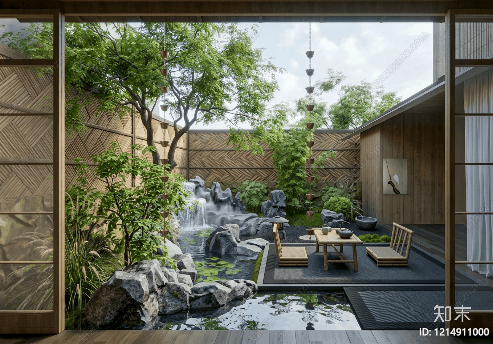 - 新中式景观别墅庭院 庭院 花园 下沉空间