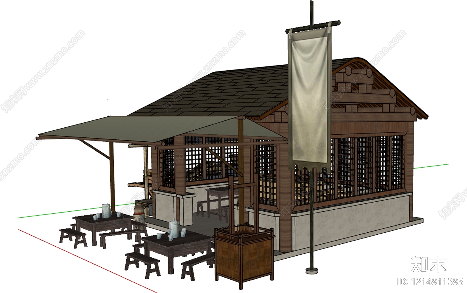 - 新中式古建筑 铺面 茶铺面 古代店铺