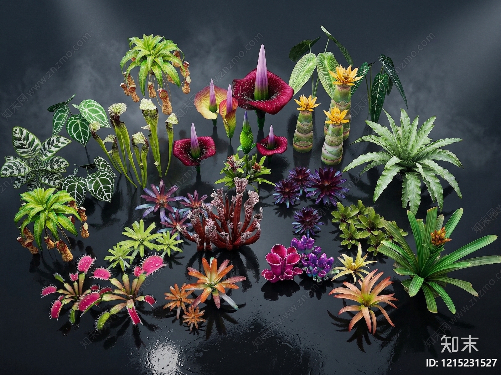 - 奇幻植物风植物组合 奇幻植物 地涌金莲 积水凤梨 瓶子草 竹芋