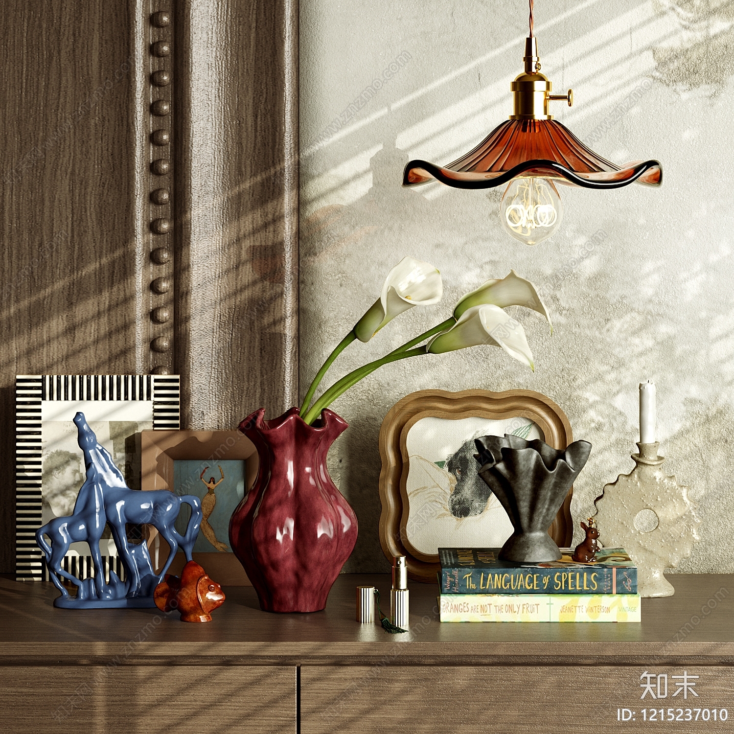 - 中古风摆件组合 中古风花瓶 中古风台灯 中古风挂画 电视柜摆件 玄关柜摆件