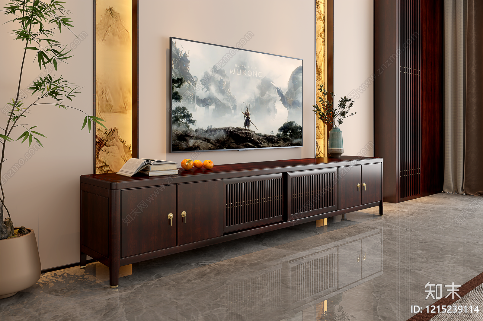 新中式电视柜 宋氏美学客厅 新中式电视墙