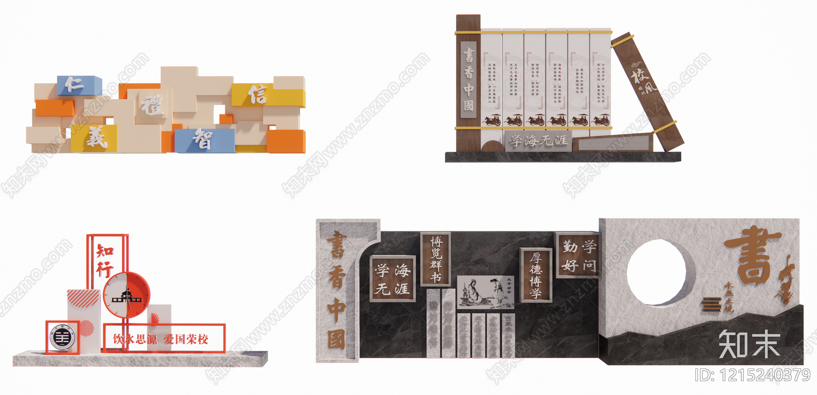新中式景墙 校园文化景观小品 阅读主题中式景墙 新中式校园文化墙 校园景观标识标牌 校训校史宣传小品
