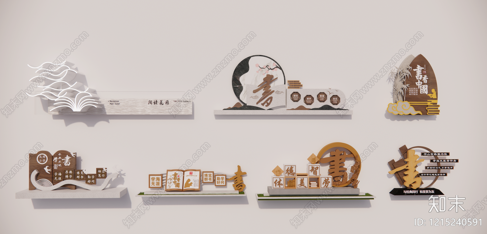新中式其他景观小品 新中式书香装置 阅读主题雕塑小品 校园文化景观小品 阅读主题LOGO 传统书香文化景墙