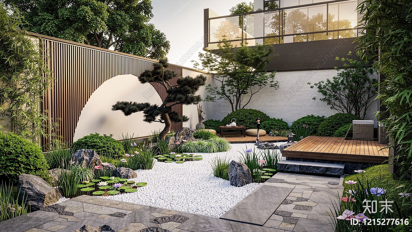 新中式景观别墅庭院 小庭院 别墅庭院 日式禅院 日式小庭院 别墅