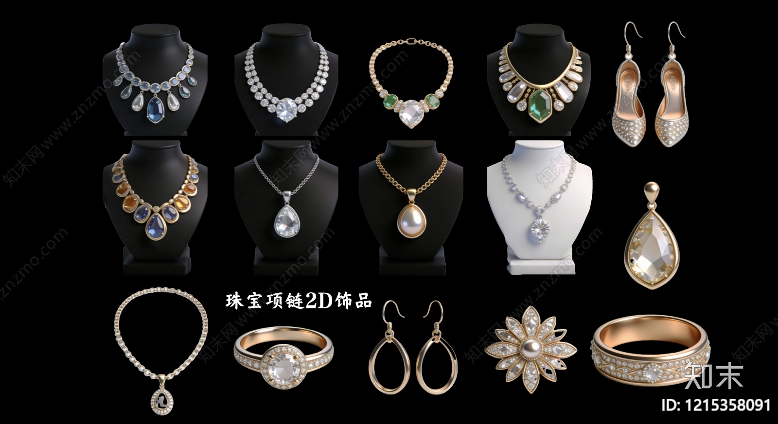 复古奢华挂件 珠宝项链2D饰品