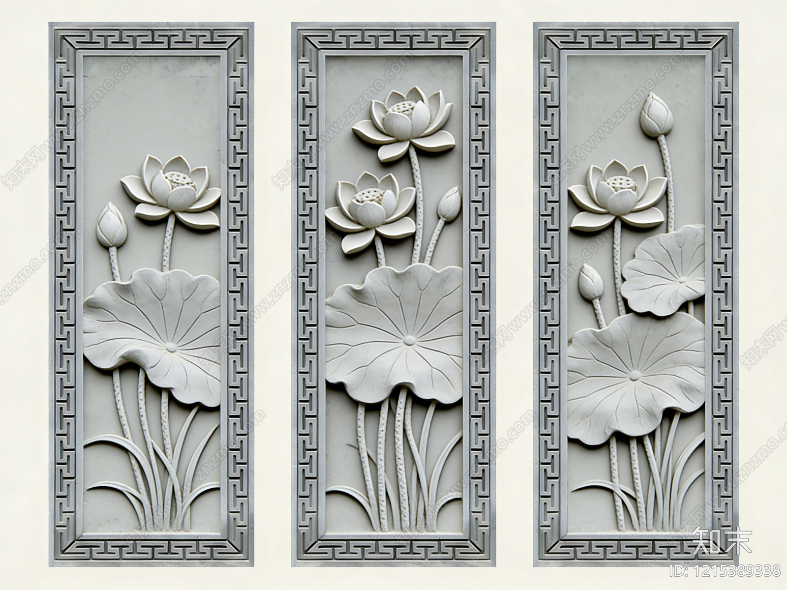 新中式浮雕 2D砖雕图案 荷花荷叶 石材雕花 景墙照壁 石雕壁画
