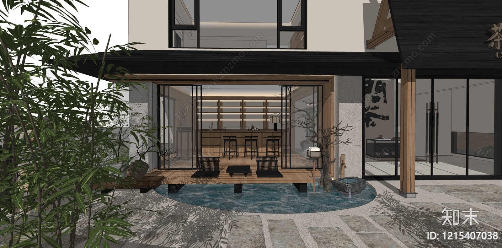 新中式别墅庭院 别墅 中式风格 茶馆 庭院