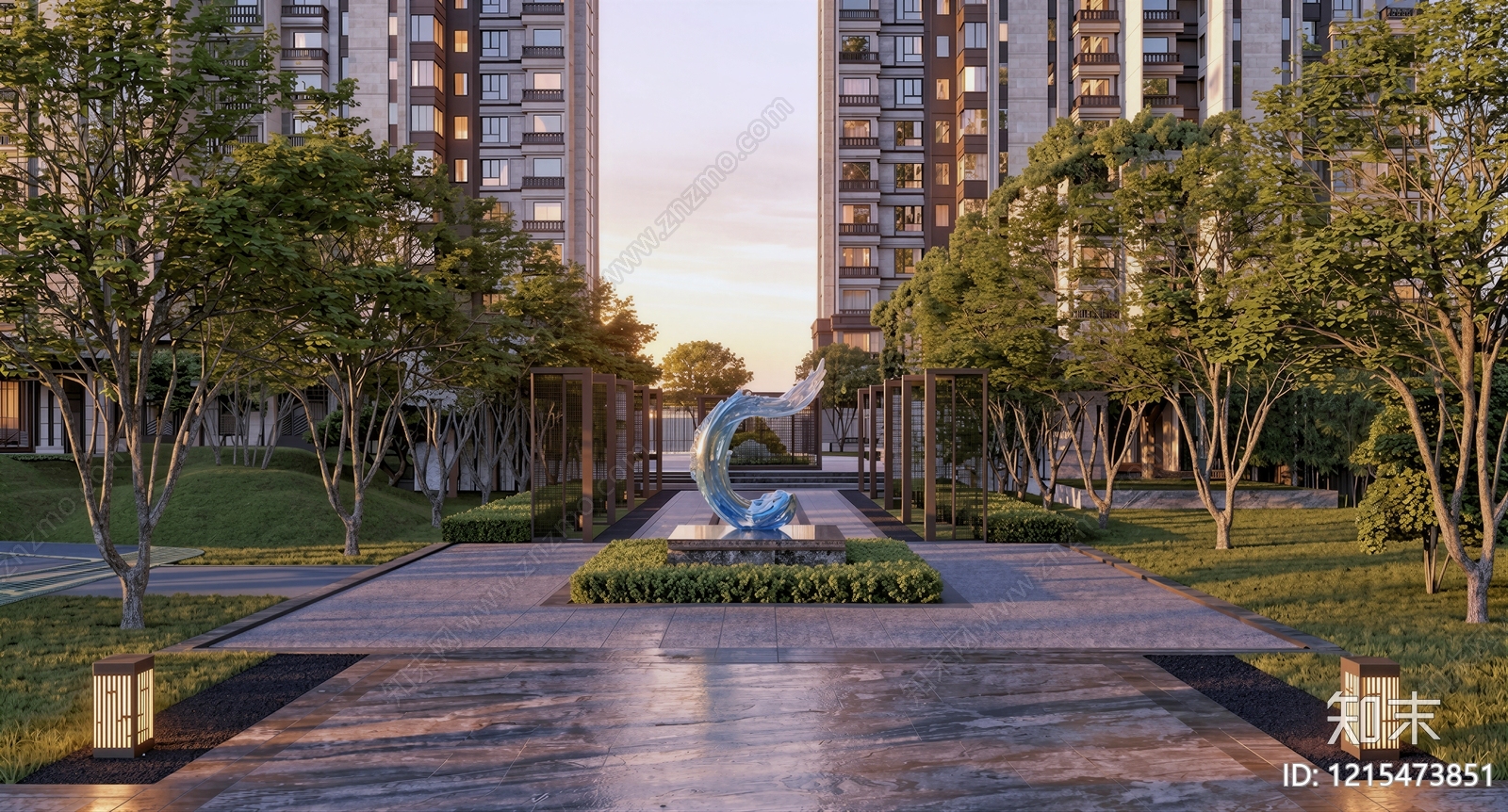 - 现代简约小区景观 住宅景观 住宅雕塑景观 住宅水景