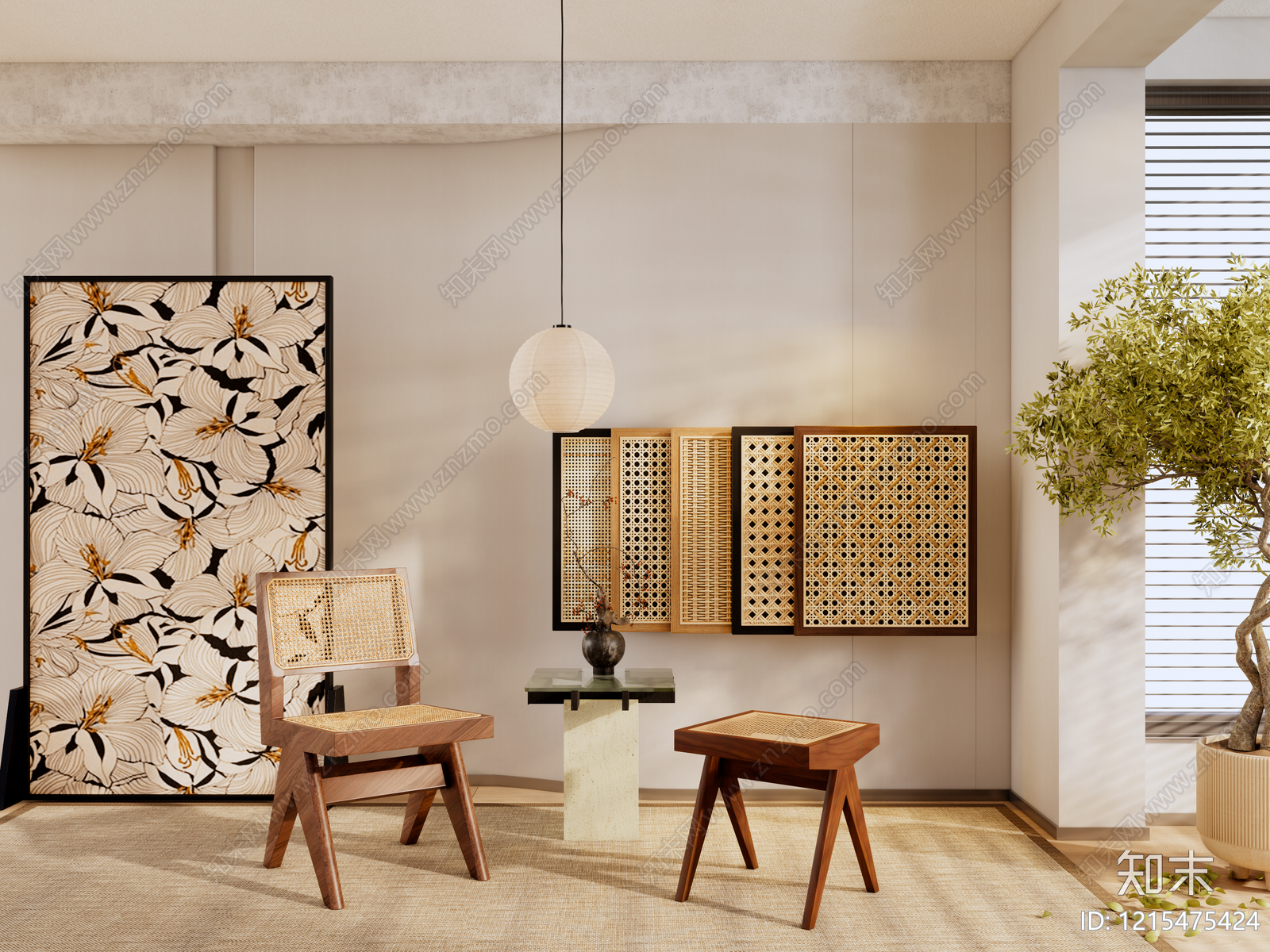 新中式家居客厅 现代中古客厅家具 中古藤编座椅 藤编编椅 竹编藤编柜门 中古壁画吊灯