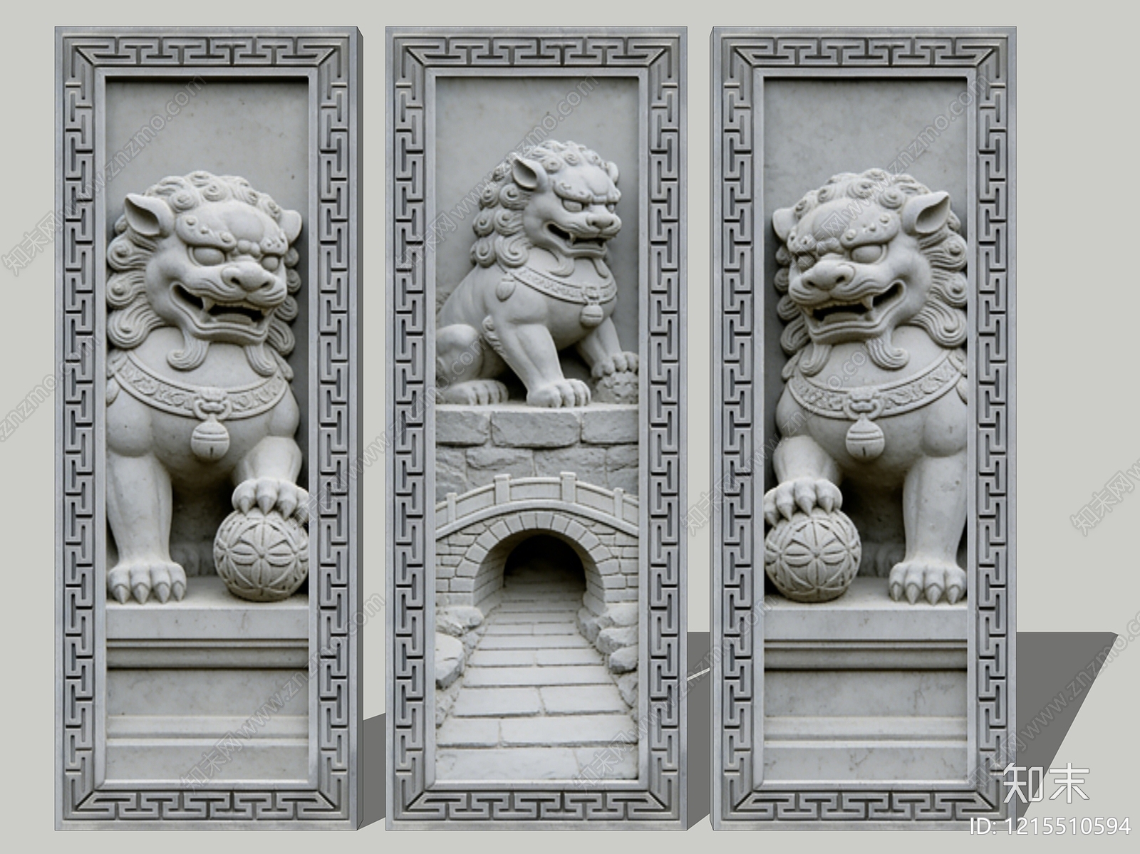 - 新中式浮雕 2D砖雕图案 狮子 景墙照壁 砖雕浮雕 石材雕花