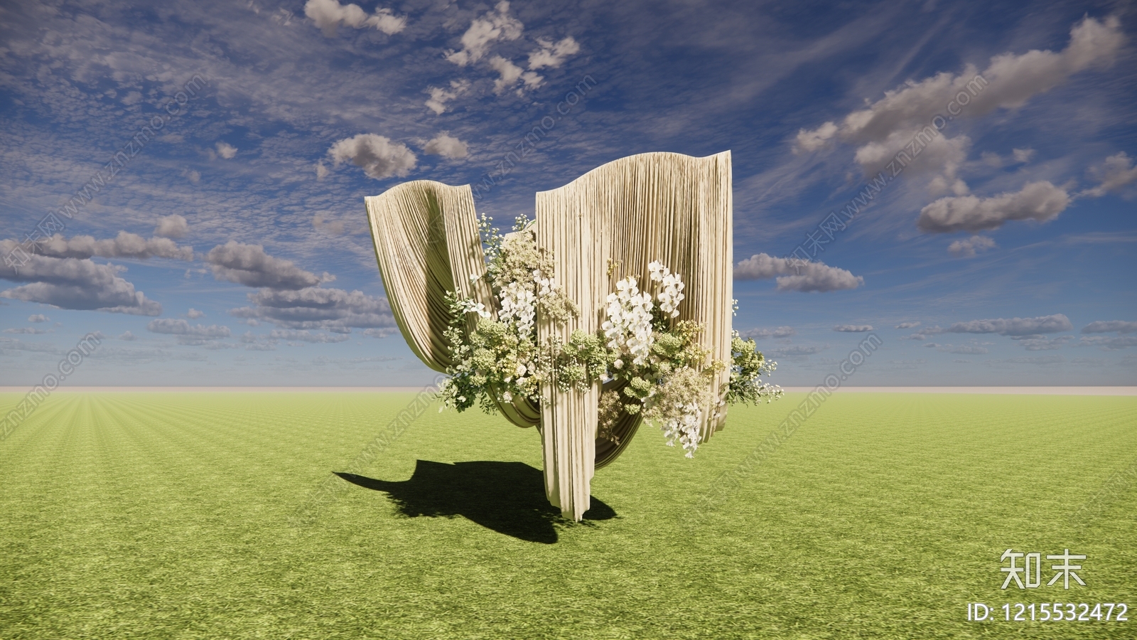 - 奶油风其他美陈 布幔造型装置背景 花艺组合婚礼