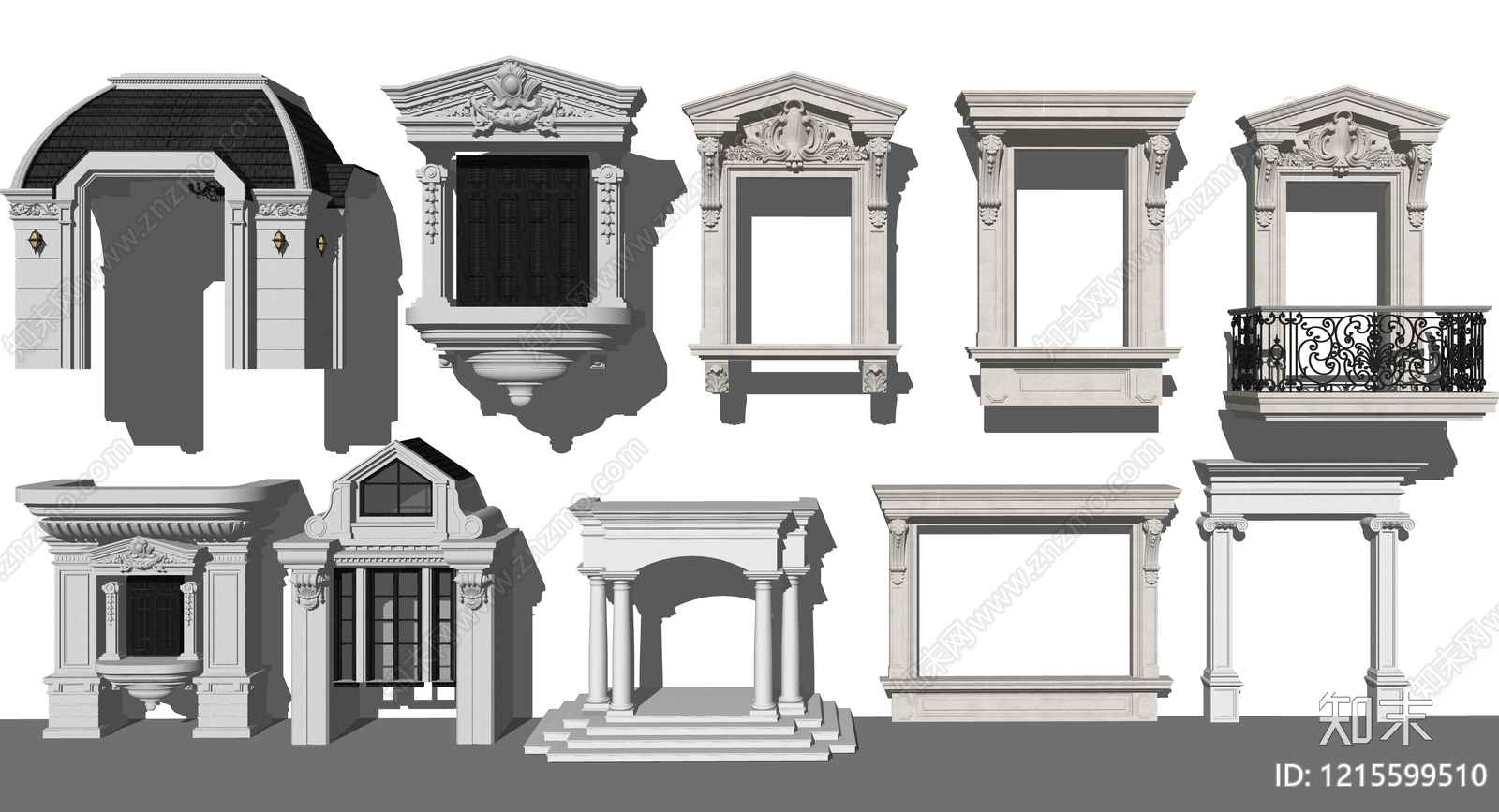- 欧式古典小区入户大门组合 石材窗户门廊组合 景观门头建筑