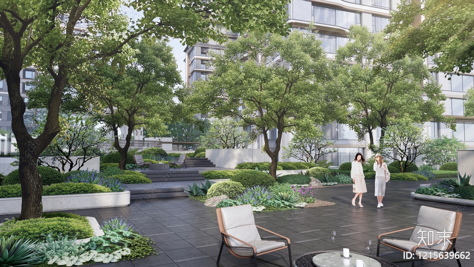 - 现代轻奢小区景观 龙湖景观 林下景观 平台楼梯