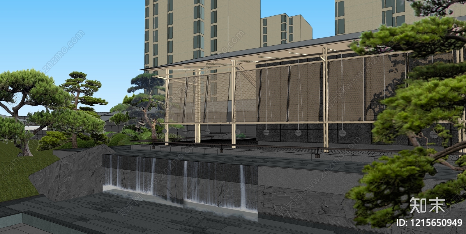 - 新中式小区景观 下沉庭院 示范区庭院 水景 景墙 中庭