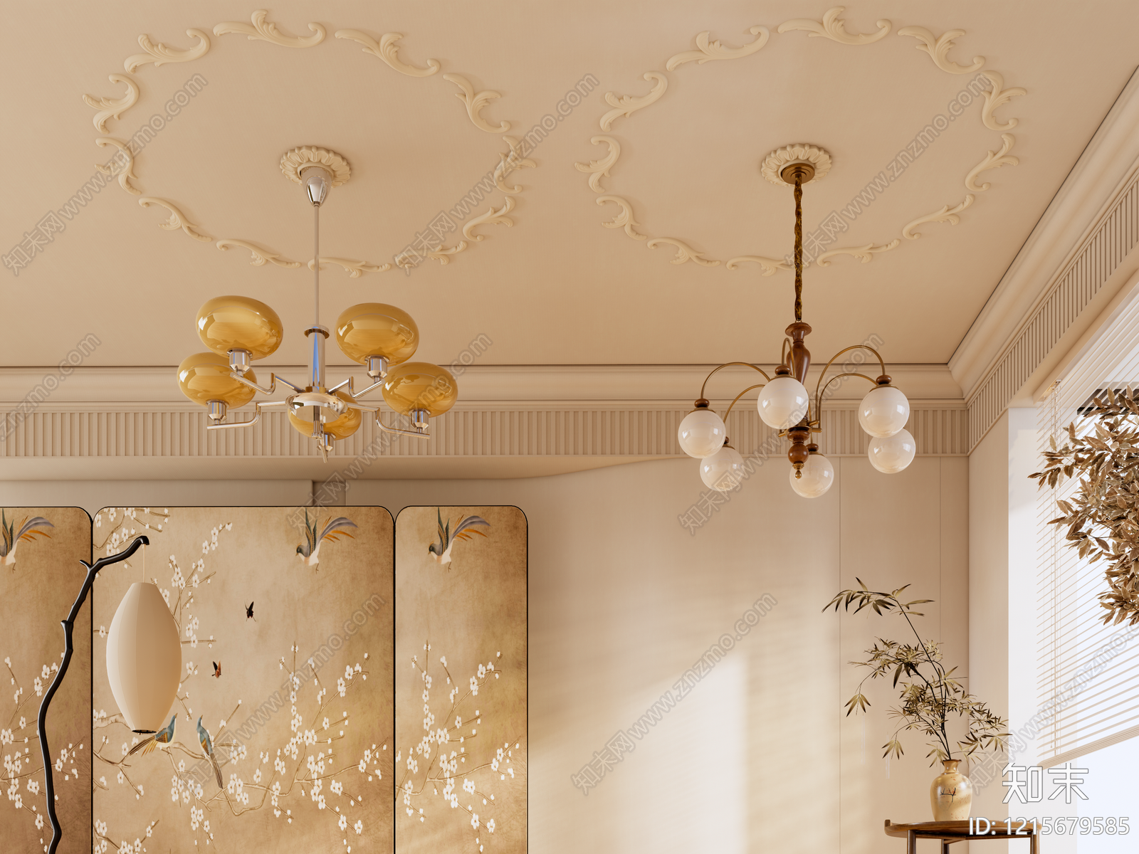 法式客厅吊灯 客厅主灯 装饰画 吊灯盆栽 吊灯落地灯