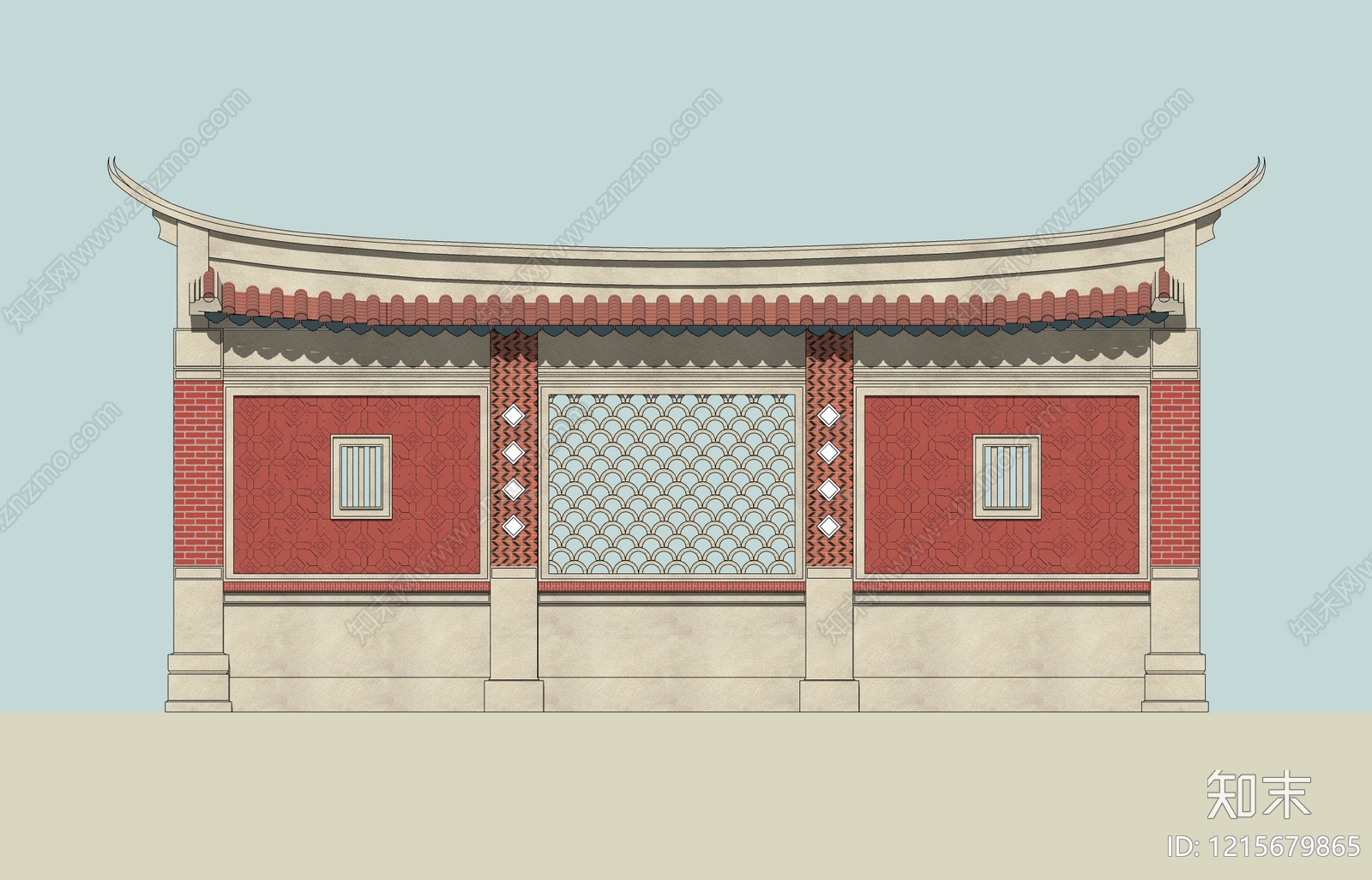 - 新中式景墙 闽南景墙 红砖景墙 燕尾脊景墙 影壁墙