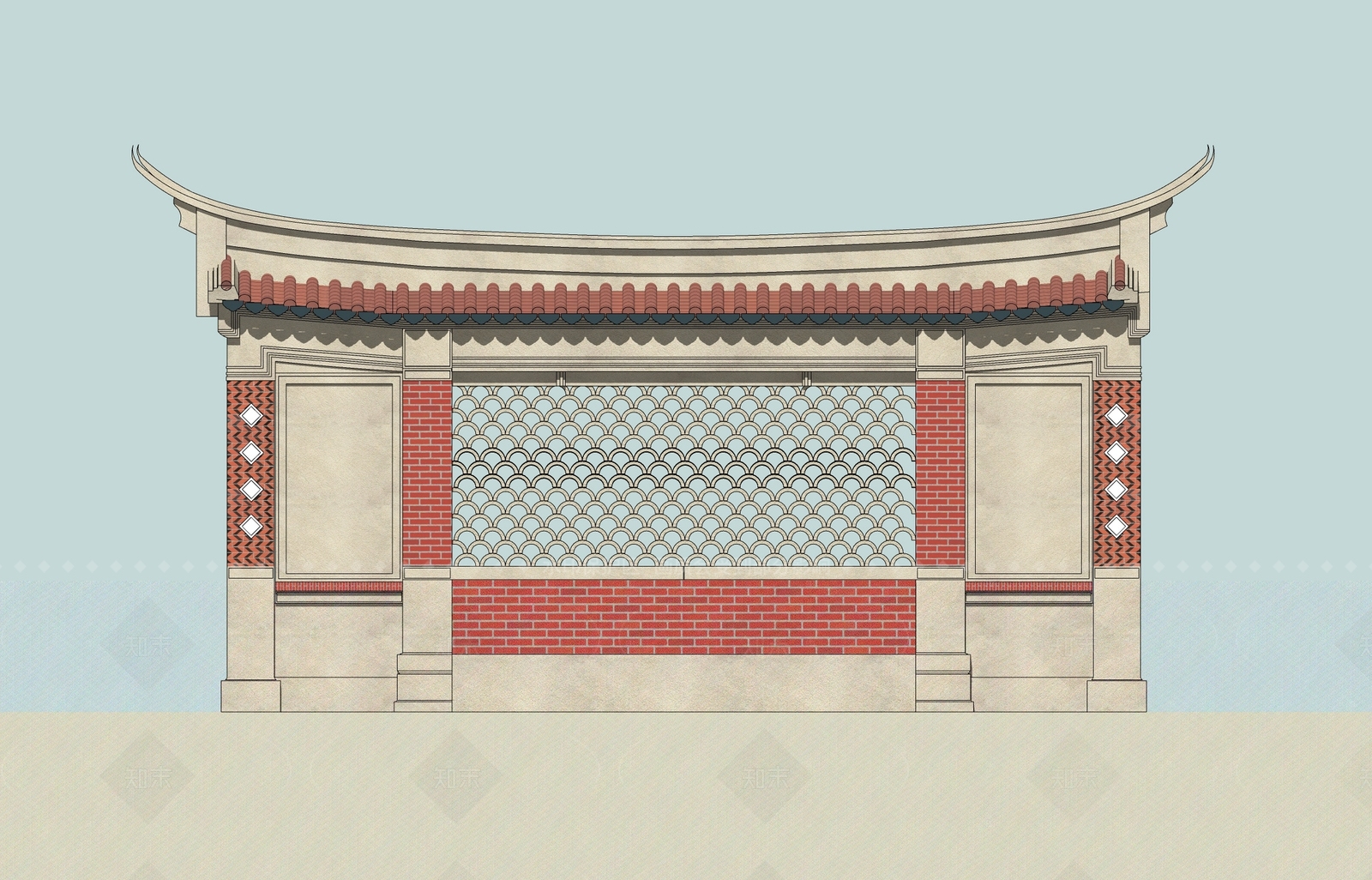 - 新中式景墙 闽南景墙 红砖景墙 燕尾脊景墙 影壁墙
