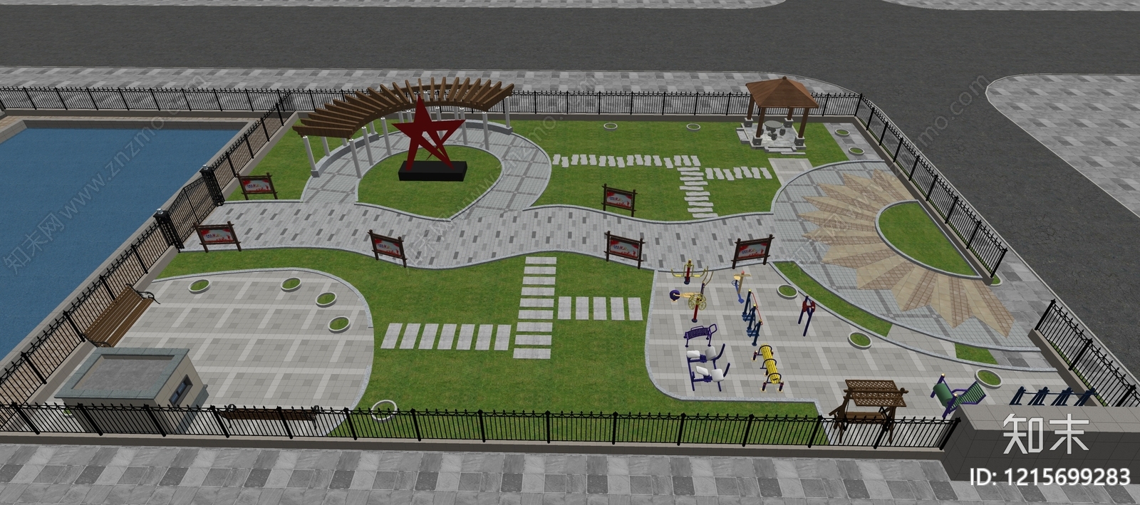 - 新中式广场景观 连廊乡村舞台 乡村宣传栏 乡村广场 乡村建筑