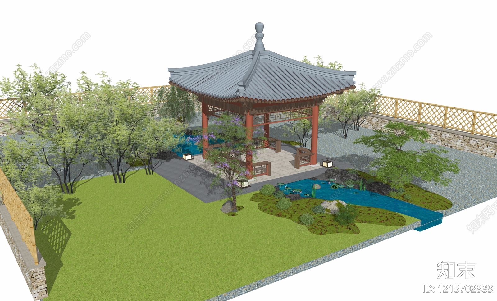 - 新中式景观亭子 庭院 亭子 四角亭 仿古亭