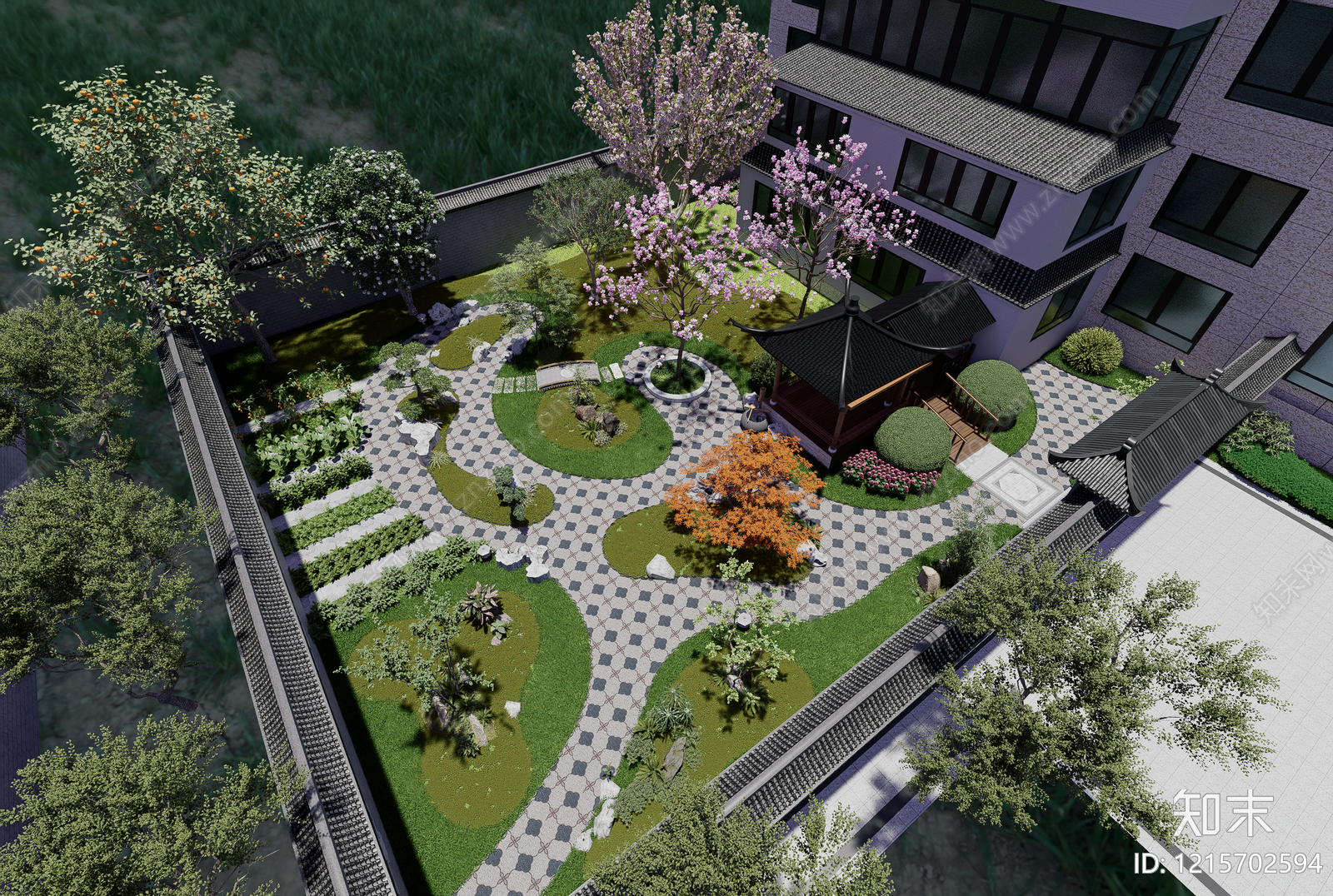 - 新中式景观别墅庭院 别墅庭院 新中式别墅景观 别墅菜园