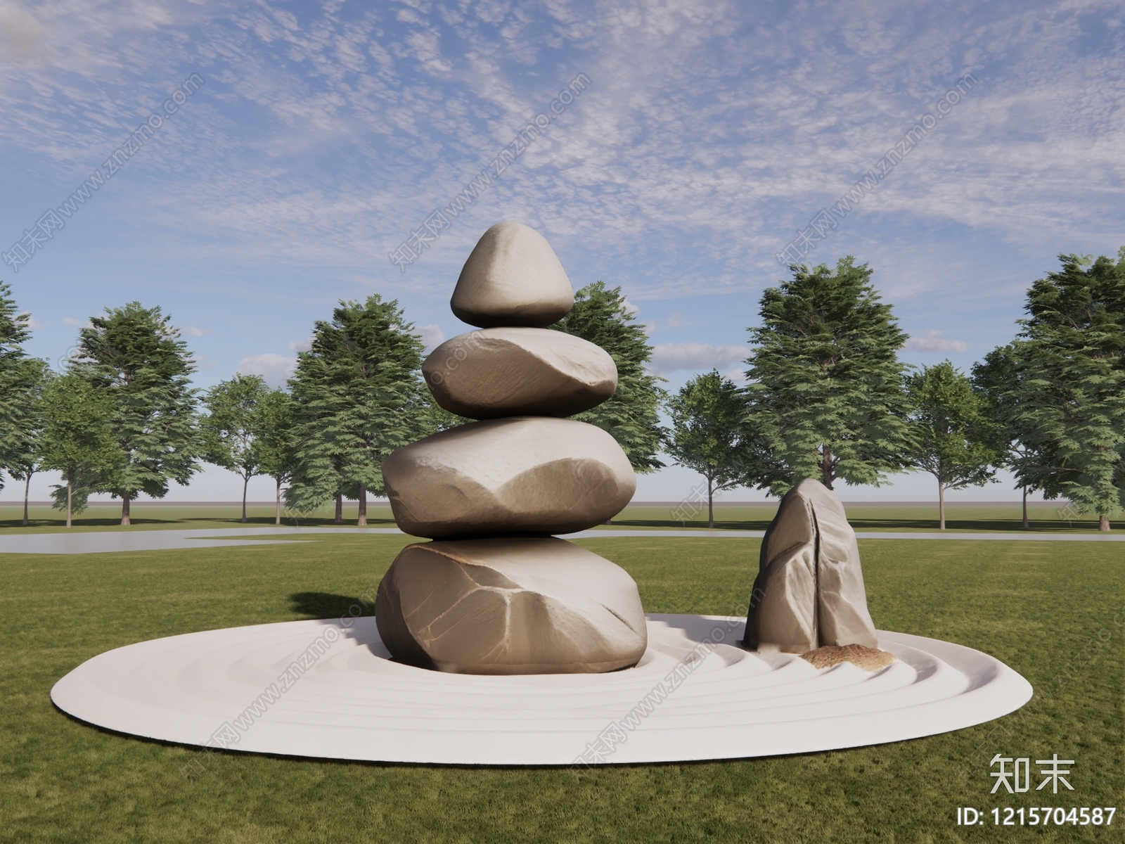 - 新中式景观其他景观小品 塔式香炉 四足方鼎 太极阴阳基座