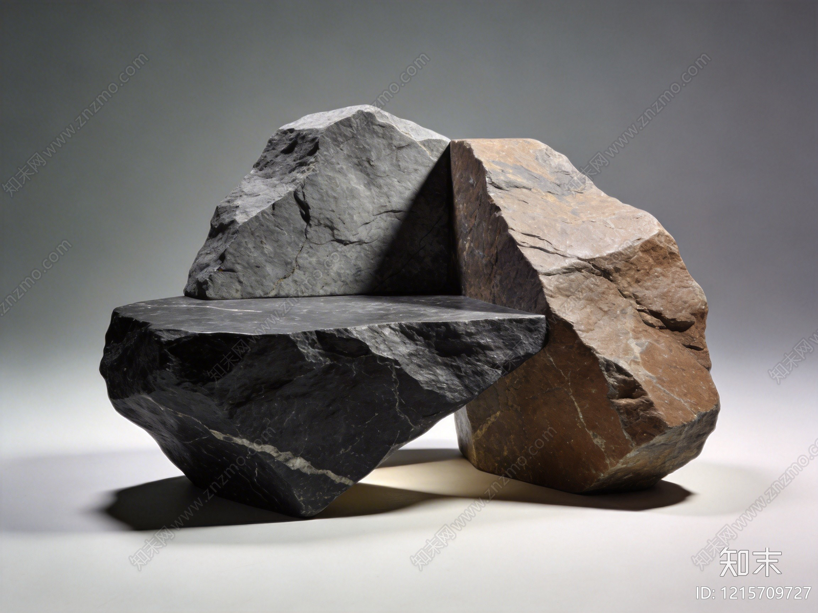 侘寂休闲椅 石材 景观 摆件 AI渲染 景观座椅