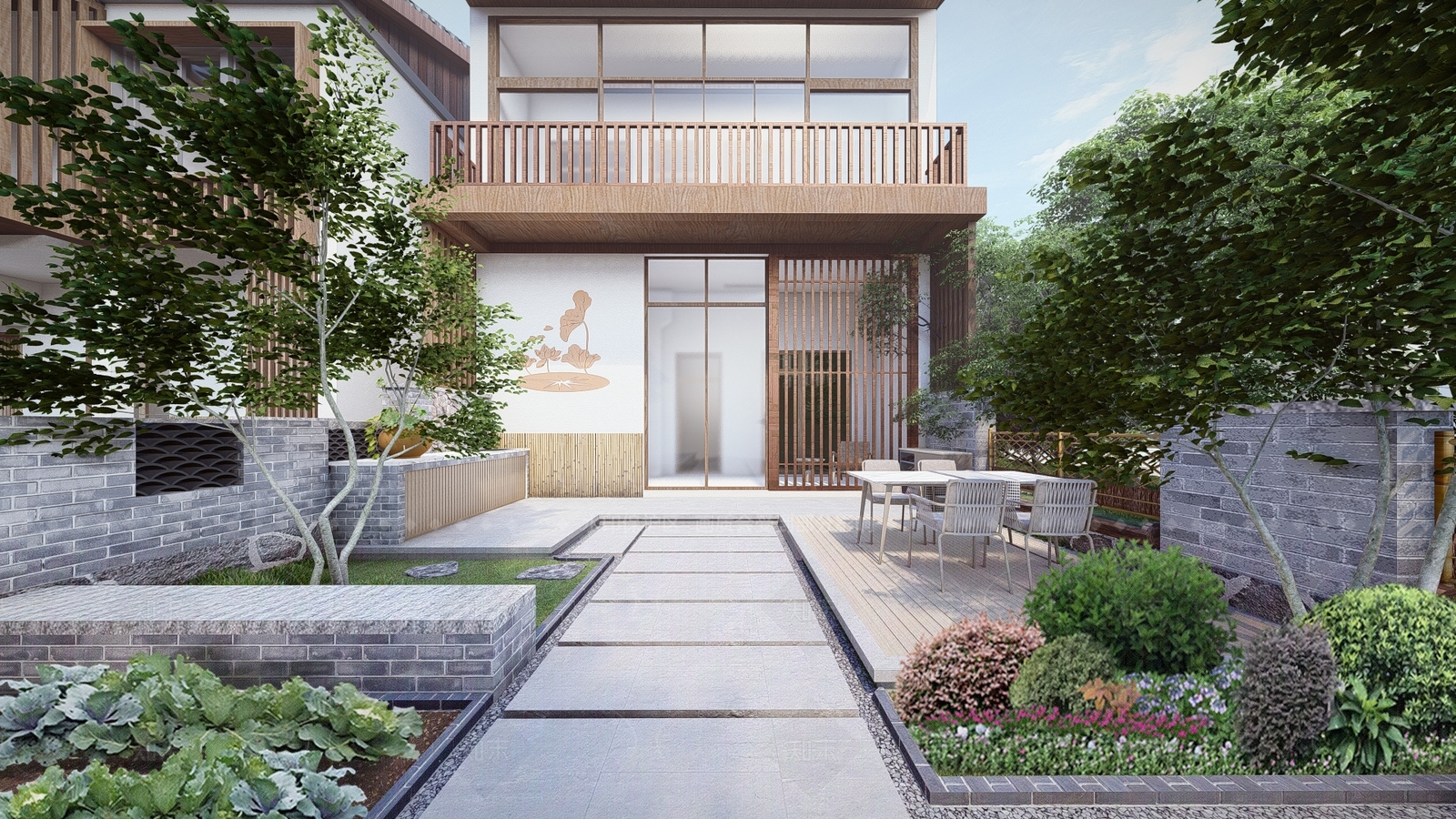 - 新中式景观别墅庭院 别墅庭院 新中式别墅景观 别墅菜园