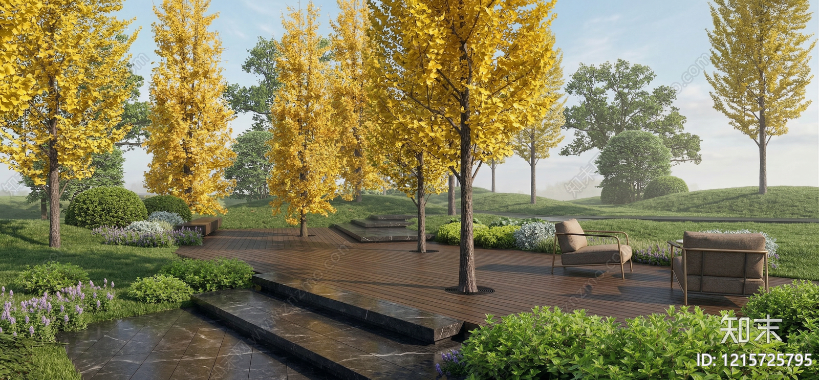 现代自然主义景观休憩花园 草坪休憩平台