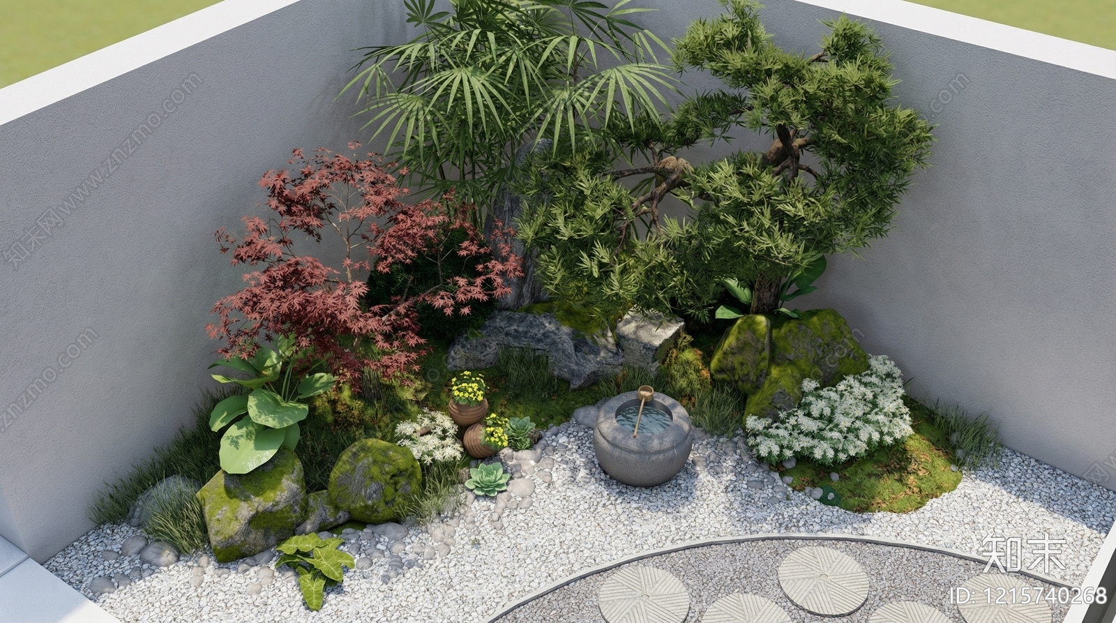 - 新中式景观别墅庭院 中式庭院花园 园林景观 枯山水