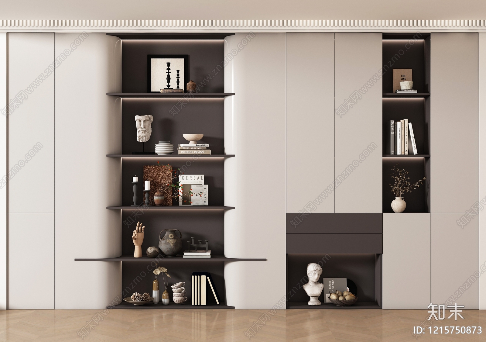 现代书柜 储物柜 背景柜 书籍摆件组合 装饰柜